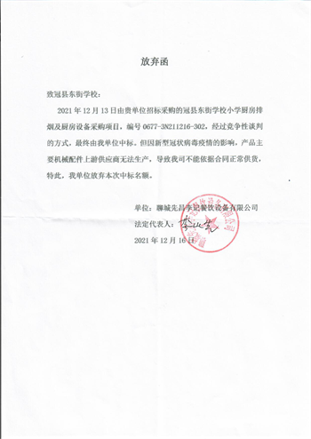 冠縣東街學校小學廚房排煙及廚房設備采購項目廢標公告