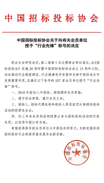 喜報(bào):山東正信招標(biāo)有限責(zé)任公司獲“行業(yè)先鋒”稱號(hào)